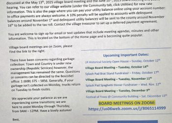 BOARD MEETING TONIGHT AT 7:00 PM @ LONE ROCK VILLAGE OFFICE